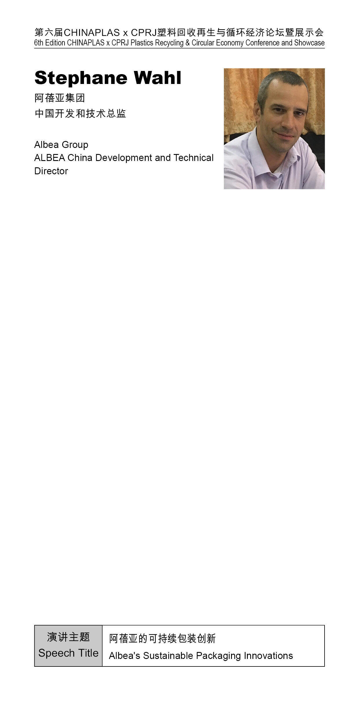 【Presentation】Albea Group - Stephane Wahl, ALBEA China Development and Technical Director