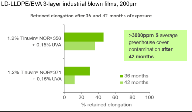 BASF, as a global leader in plastic additives, developed its Tinuvin® NOR® 356 which is based on the advanced NOR® technology. This changes the molecular structure of the light stabilizer so that the reactivity between the light stabilizer and the active groups of pesticides is reduced immensely. It leads to a much longer service life in an environment of high pesticide residues and rebuts all the disadvantages.