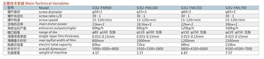 The machine entails advanced consecutive rotation machine head, ensures smoothand homogeneous products, meets the film's quality repuirement during the subsequentworking procedure of the packing machine or the printer, also is useble for manufacturingthe complex bead sheen film, complex hydro· packing film, insulation film, multi- functionalfarming film, etc,, Its application range is gradually widening to the target of plastic productdevelopment.