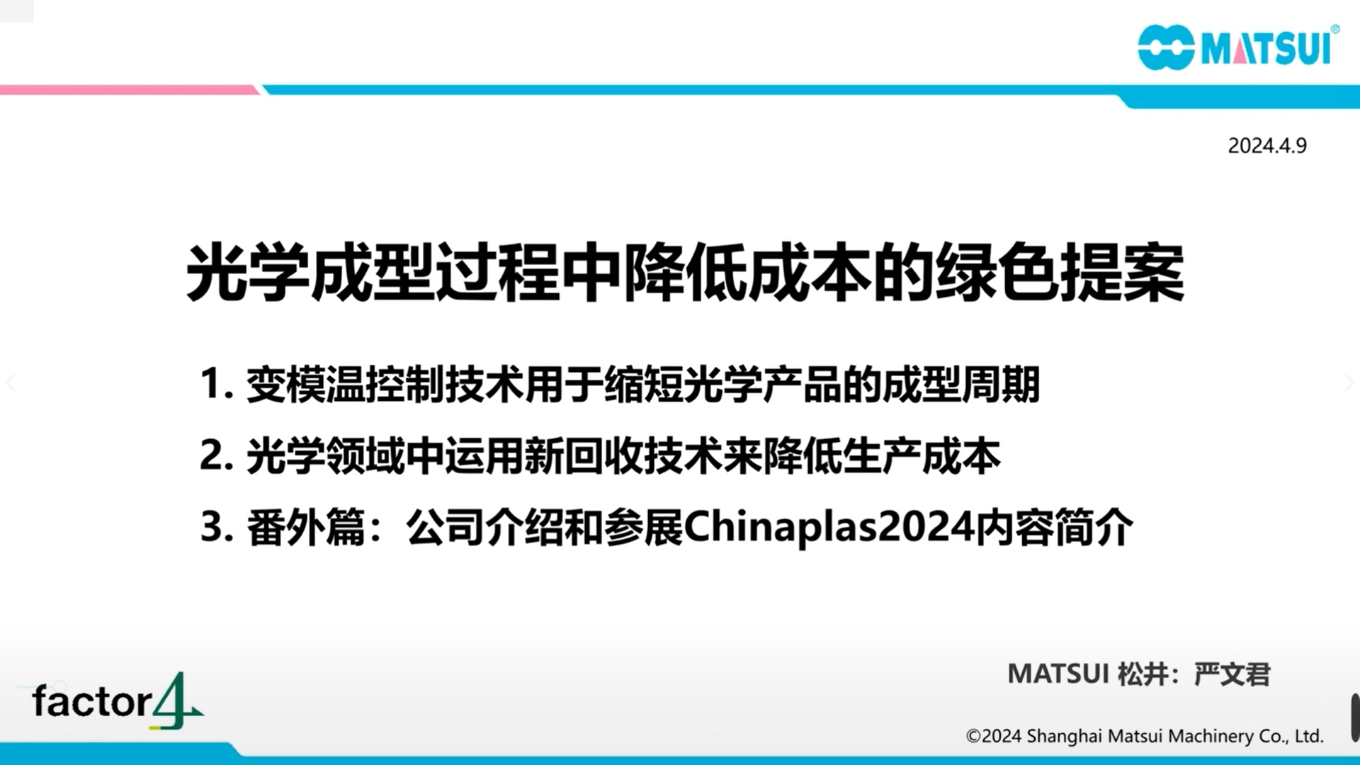 【Mandarin session:Webinar playback】Advanced solution for cost reduction in the Matsui optical molding process