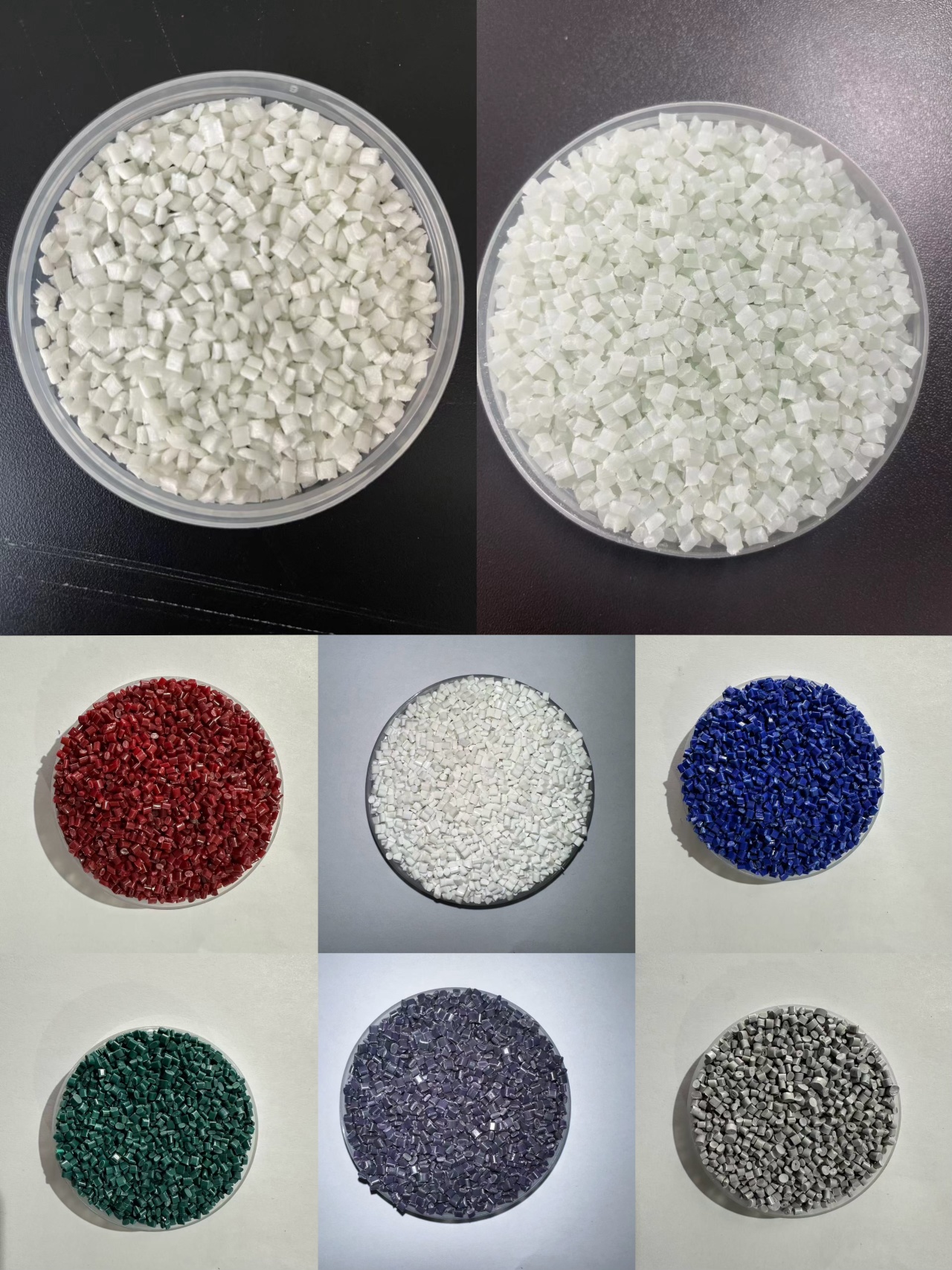 产品可以消减或者消除回收PET粒子的灰黄外观,提升回收PET粒子的透明外观和质量,提升回收PET制成品的光泽质感和美观度,适合化学法回收和物理法回收,综合成本更优。