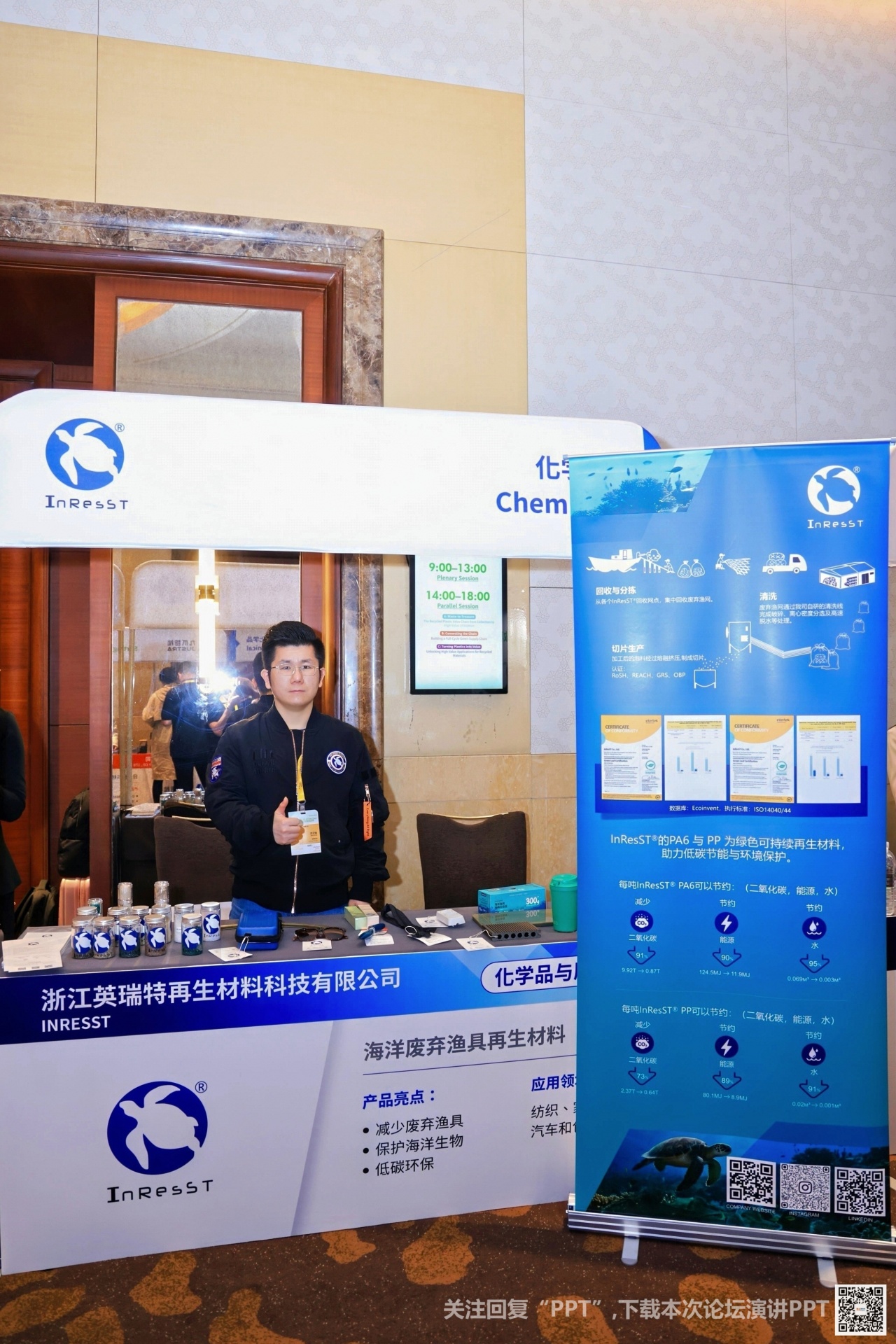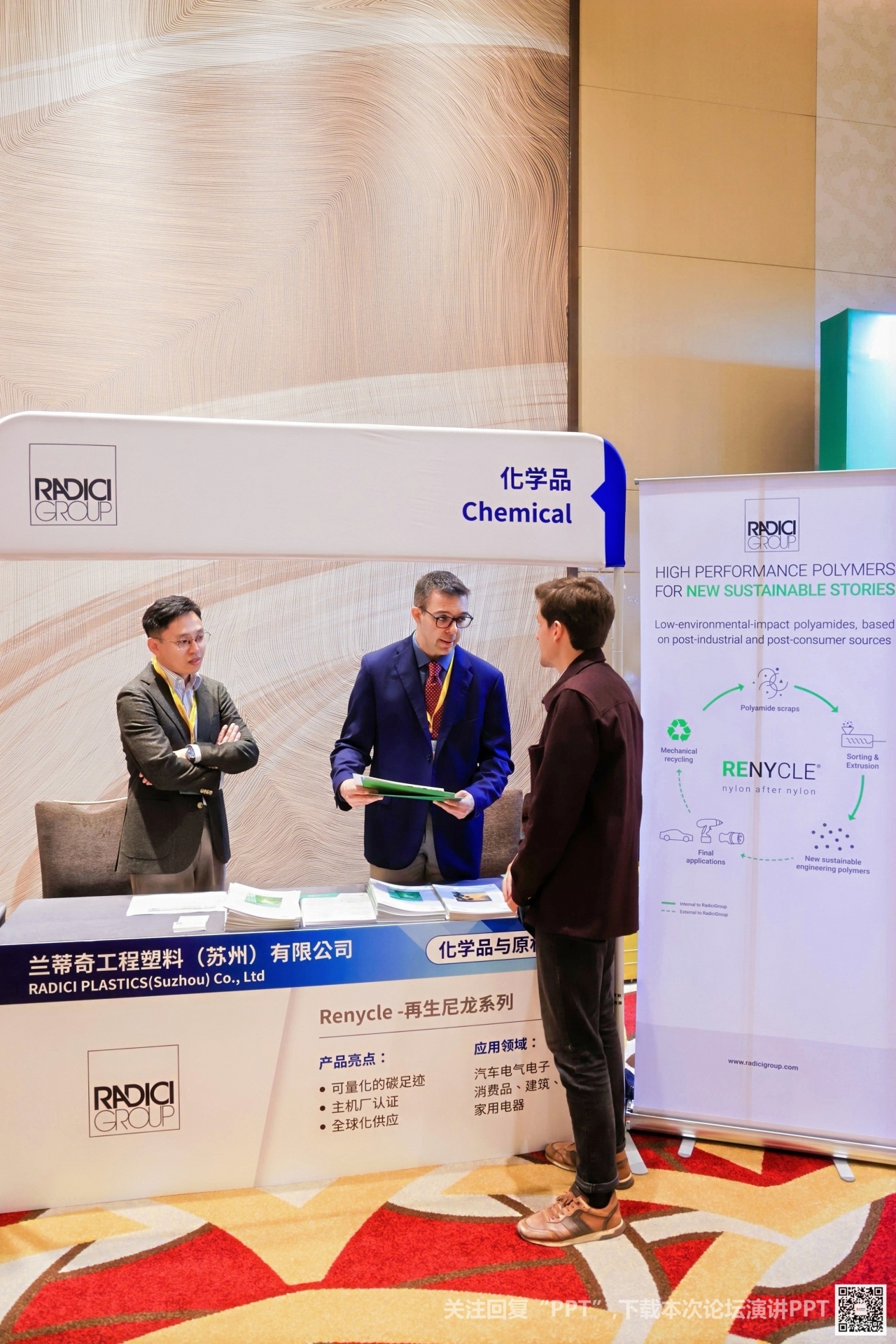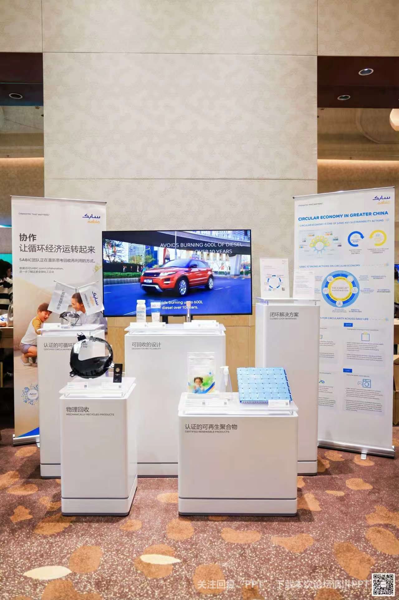 沙特基础工业(SABIC)分享再生科技方面的循环方案。“共合作,致循环”。